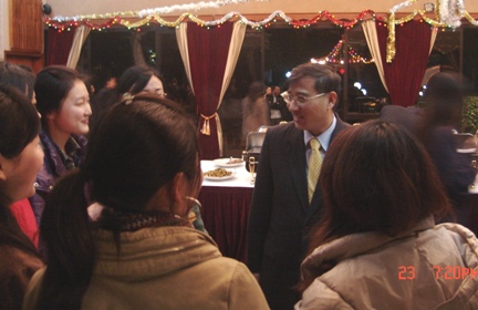 招待会上龚大使与留摩学生亲切交谈