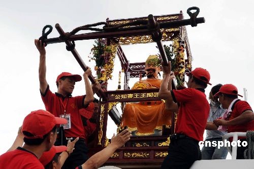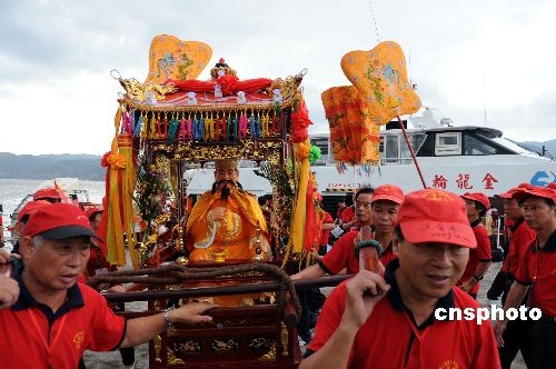 6月28日下午,护送闽王金身圆满结束首次跨海巡安台湾本岛的福州市闽王金身巡安台湾暨宗亲文化交流访问团成员,乘坐“金龙轮”经“两马”航线返回福州马尾港,圆满结束为期10天的台湾巡安交流活动。中新社发 刘可耕 摄