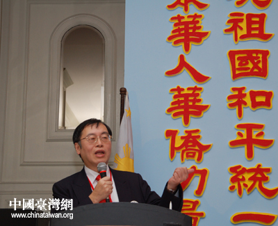中国统一联盟主席王津平在第三届“中国和平统一亚洲论坛”上发表演讲 (田云鹏 摄)