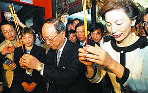 蒋孝严夫妇在蒋氏故居本堂进香祭祖