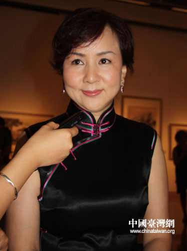 本网记者在“白云怀古国——黄君璧画展”开幕式后专访台湾艺术家黄湘詅。(中国台湾网 董洁 摄)