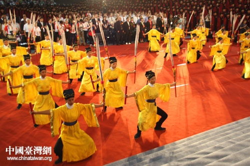 9月27日上午,2009年第二届两岸师生联合祭孔大典在台湾新竹县立体育馆举行,图为祭孔大典现场。(中国台湾网 李杰 摄)