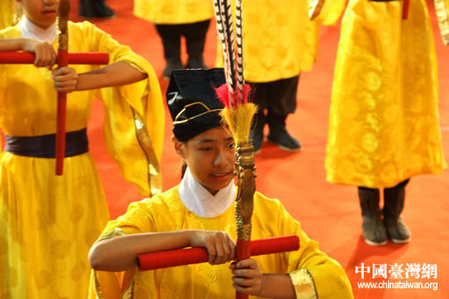 参加祭孔大典的台湾忠信学校学生。(中国台湾网 李杰 摄) |
