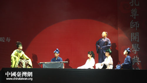 两岸学生共演《论语》短剧,题为《学做人、学做事、学担当天下》的古今师生对话。(中国台湾网 李杰 摄)