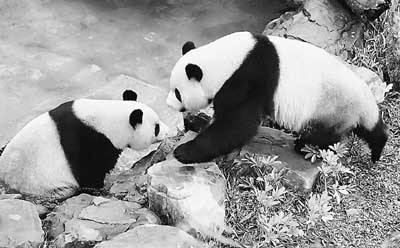 一年时间,团团、圆圆凝聚了不少人的心。“它们真是天生的明星,”一位台湾摄影记者称赞,“怎么拍都有画面。”团团、圆圆初次户外亮相,在众多目光注视下,它们时而争挤独木桥,时而到水池中戏水,憨态可掬,让人忍俊不禁。今年9月1日,是团团弟弟的5岁生日,动物园特别为它制作了胡萝卜、苹果冰蛋糕。不料,圆圆姐姐横刀夺爱,还对前来争抢的团团来了一个“无影脚”,两熊猫立刻扭打在一起,观众无不笑翻。
