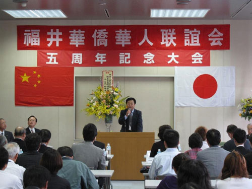 “福井华侨华人联谊会”名誉顾问、福井县前知事栗田幸雄,县日中友协会长、福井市前市长酒井哲夫,福井县立大学校长祖田修,日本华侨华人联合总会代表陈学全,联谊会顾问,日中关系研究所所长凌星光,永平寺町町长松本文雄等先后致辞,向联谊会成立五周年表示祝贺,并高度评价联谊会为促进福井华侨华人“团结、合作、发展”和支持国内建设所作的努力,希望联谊会以此次会议为契机,抓住机遇,进一步拓展活动领域和内容,为促进中日民间友好发挥桥梁作用。