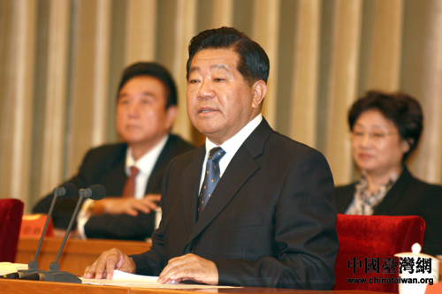 中国和平统一促进会第八届理事大会24日在京闭幕。贾庆林出席闭幕会并代表中共中央对大会的召开表示祝贺。他在讲话中充分肯定了中国和平统一促进会七届理事大会以来的工作。(中国台湾网 田云鹏 摄)