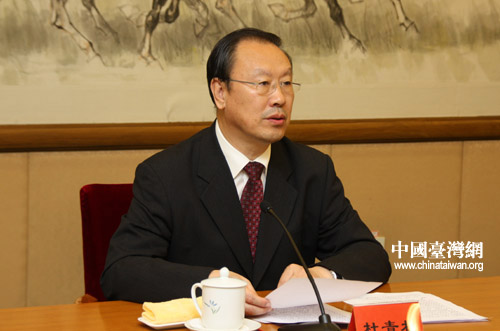 中国和平统一促进会八届一次常务理事会24日在京召开。全国政协副主席、中共中央统战部部长、中国和平统一促进会执行副会长杜青林出席会议并讲话。(中国台湾网 田云鹏 摄)