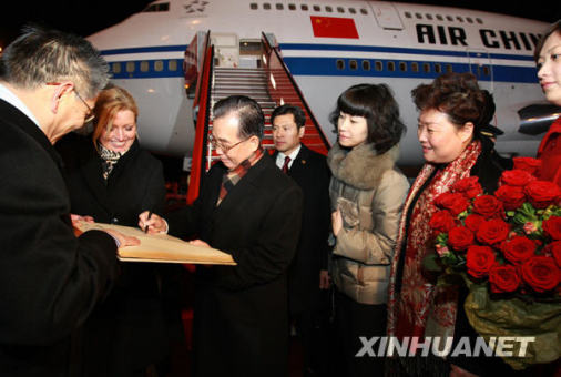 12月16日,中国国务院总理温家宝抵达丹麦首都哥本哈根,出席哥本哈根气候变化会议。这是温家宝抵达后在贵宾签名簿上签名。新华社记者庞兴雷摄