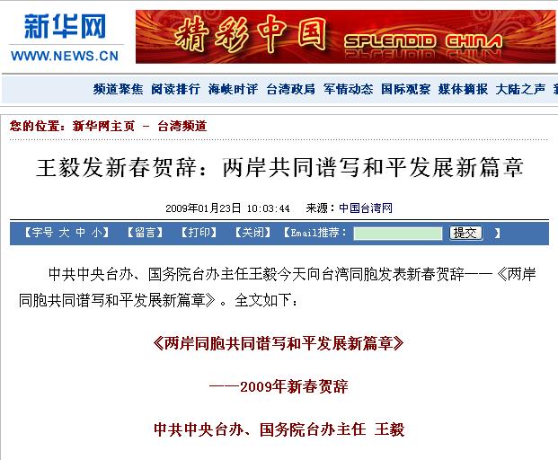 回首2008年,两岸关系玉汝于成,峰回路转。展望2009年,两岸关系方向明确,前景光明。