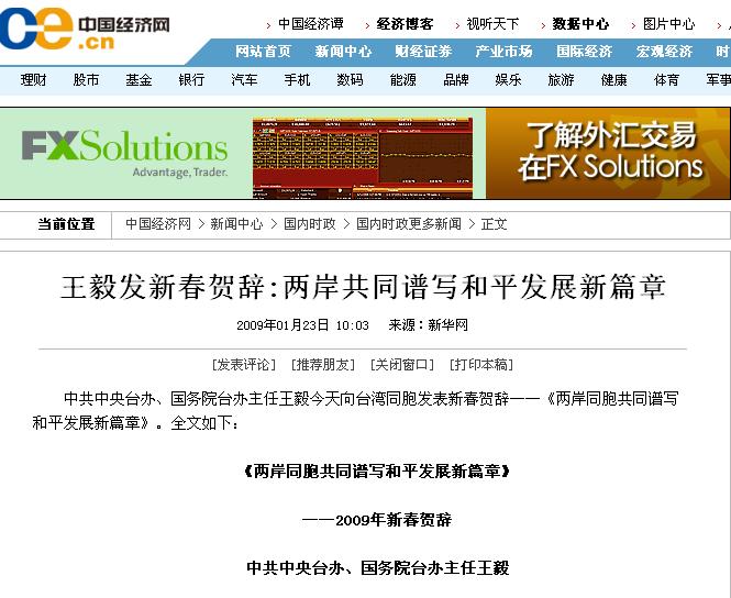 回首2008年,两岸关系玉汝于成,峰回路转。展望2009年,两岸关系方向明确,前景光明。