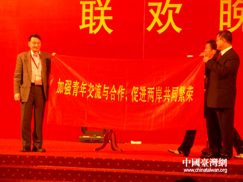 15日下午,由中国共产主义青年团与中国国民党青年团共同主办的两岸青年论坛胜利闭幕。当日晚,两岸青年代表团在北京饭店举行了隆重的联欢晚宴。(于晓亮、钟宝华) |