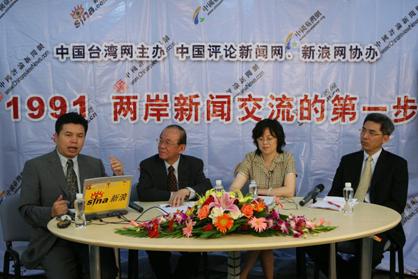 为了纪念这个历史性事件,进一步促进两岸新闻交流,中国台湾网特邀事件亲历者--现任国台办新闻局副局长范丽青,中国评论通讯社社长郭伟峰,台湾《中国时报》原总编辑黄肇松和副总编辑俞雨霖于21日上午10:30-11:30在线访谈。(摄影:胡津南)