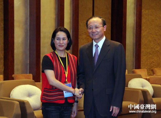 8月20日下午,国家旅游局局长、海峡两岸旅游交流协会会长邵琪伟会见台湾少数民族代表团团长高金素梅一行。(中国台湾网 钟宝华 摄)
