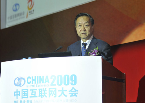 工业和信息化部部长李毅中在2009中国互联网大会开幕式上发表演讲 郭小天摄