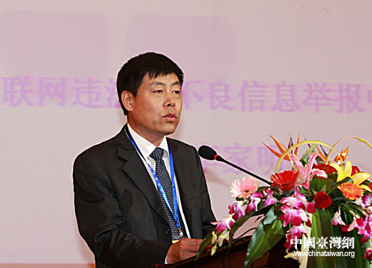 互联网违法与不良信息举报中心主任、中国网执行总裁李家明做主题演讲。(中国台湾网 发)