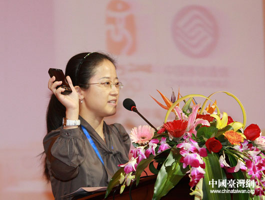 中国移动数据部个人产品中心副主任胡怡在主题论坛上发言(中国台湾网 钟宝华 摄)