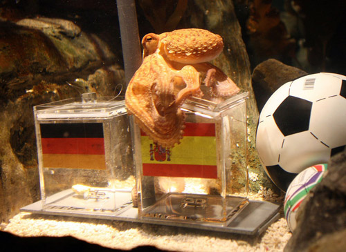 新浪体育讯 一只出生于英国、成长于德国、来自德国奥博豪森水族馆的章鱼,意外成为了南非世界杯赛场外的大明星。还没有迎来自己三周岁生日的章鱼保罗,一时间在德国乃至全世界球迷圈内可谓是无人不晓。