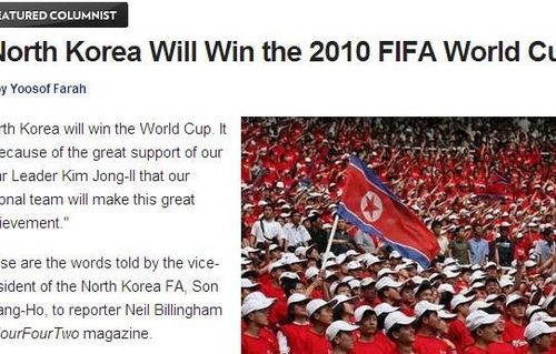 在接受442杂志的采访时,孙光浩雄心勃勃的喊出了朝鲜队本届世界杯的终极目标:“朝鲜队将会夺得世界杯冠军!”到目前为止,这恐怕是本届世界杯上最让人惊叹的争冠宣言。在谈起球队能够夺冠的理由时,孙光浩的态度更是十分坚定:“本届世界杯朝鲜将会夺冠,因为我们有亲爱的领袖金正日的巨大支持,这将会带领我们达到最后的伟大目标!”