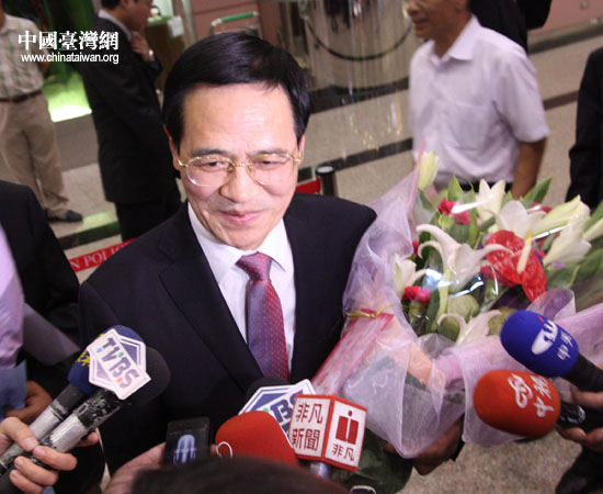 中共河北省委副书记付志方于23日中午抵达台湾桃园机场,在机场接受了两岸媒体的访问(摄影 中国台湾网 陈宁)