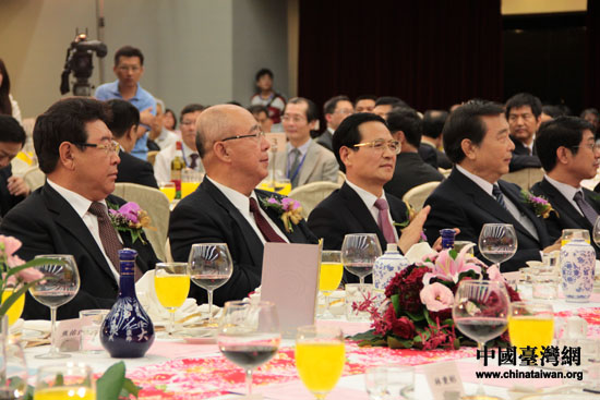 河北省委常委刘永瑞(左一)、中国国民党荣誉主席吴伯雄(左二)、河北省副书记付志方(左三)、世贸中心董事长王志刚(左四)出席开幕式酒会(摄影 中国台湾网 陈宁)