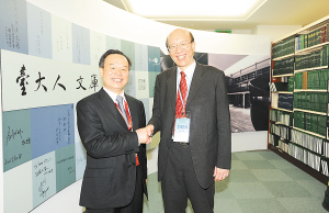 5月9日,北京大学校长周其凤(左)与台湾大学校长李嗣涔出席签署协议活动。 当日,北京大学校长周其凤、台湾大学校长李嗣涔及两校有关负责人在台北分别签署了《北京大学与台湾大学交换学生计划协议书》等协议,进一步扩大两校在科学研究、人才培养等方面的合作。