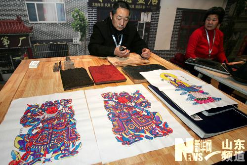 1月9日,手工艺人在制作木版年画。
