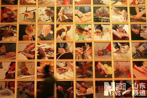 当日,《手艺农村——山东农村文化产业调研成果展》在中国美术馆开幕。展览通过文献资料、实物展示、艺人演示等形式,展示了山东潍坊风筝、临沂柳编、红花乡中国结、曹县桐杨木艺、鄄城土布、巨野农民工笔绘画等丰富的民间手艺。新华社发(赵冰 摄)