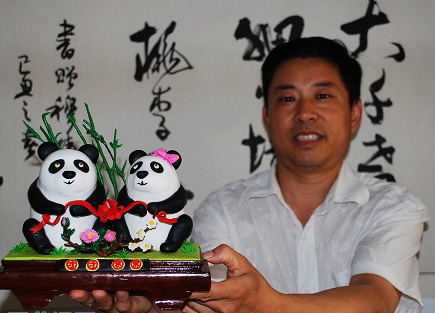 穆绪建展示面塑熊猫“团团”“圆圆”
