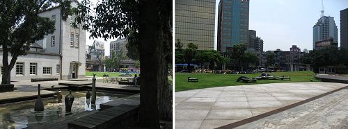 如果不知道这里的地理位置,乍看之下,这张图片的感觉,很像一所大学吧?在新生北路高架桥上往下瞥见这处空旷的空间,看来像似座公园,又像历史古迹,没错,这里是座古迹,但不是公园,也不是所大学,是座文化园区!