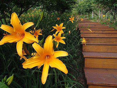 沐心泉金针花季将从五月份开始展开,五月中左右满山花海的盛况将一直维持到九月份,是这个季节为人所津津乐道的赏花盛会。沐心泉园区广大,游客可别嫌累,慢慢从从木栈道往上走,步道两旁都是灿烂的金针花,一直延续到山顶。半山腰上有凉亭可以休息,爬的愈高,眺望的视野愈远,那也是沐心泉美丽的精髓之处。