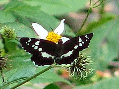 玉带弄蝶,成虫翅表底色为黑色,前翅端及中横线部位有多数白色小斑集中排列,后翅中横线部位有一明显白色宽带纹,带纹外侧有些许不明显小型黑斑。