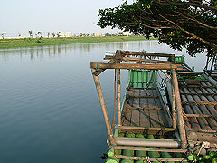 东螺溪河畔还有农村生活体验的「东螺溪休闲农场」,在门口的前方,更能体会东螺溪河畔之美。老榕旁,湛蓝天空下停靠于河畔的竹筏,漂浮河面水中植物,清澈如镜的河水面,犹如一幅仙境画,不时你还可以看着河畔的鸭子,悠游于河面,一只也好,两只也好,成群也好,就是显得悠游自在,偷得半日闲。