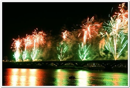 虽然花火节的活动与烟火施放是在大稻程码头,你若是要看表演与烟火秀,大稻程绝对是最佳场所,不过得去跟大伙人挤人,如果你纯粹只是要拍烟火,那里却不是摄影的最佳场地,一方面是人太多了,再一方面离烟火施放太近了,不太容易拍。有时高空烟火就在你头顶上施放,那就只能拍大大的烟花,一点景都没有 。
