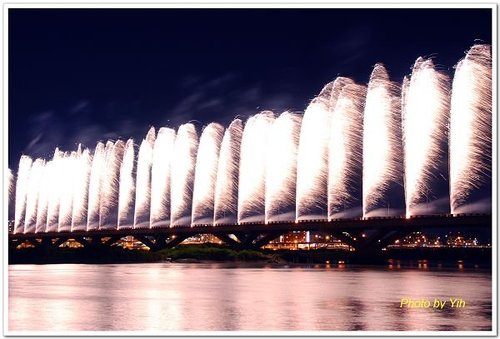摄影的爱好者大都会跑到对岸三重河堤边。从对岸拍过来不管是地面烟火还是高空烟火,甚至忠孝桥的烟火瀑布,全都跑不出你的手掌心。最佳的位置就是在忠孝桥与台北桥之间的河堤,每次烟火施放总是吸引成千上万的人潮 。