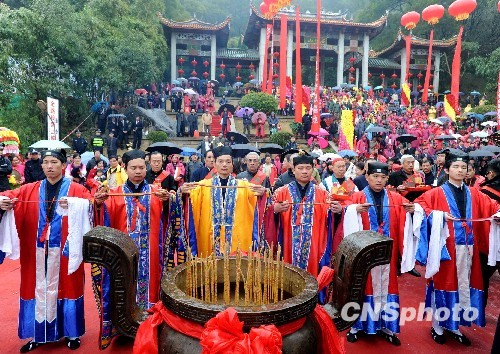 1月2日,海峡两岸道教圆梦之旅暨第二届中华梦乡福清石竹山梦文化节在福建福清石竹山拉开帷幕,来自两岸的千余道教信众在“中国梦乡”祈梦,梦圆海峡两岸。