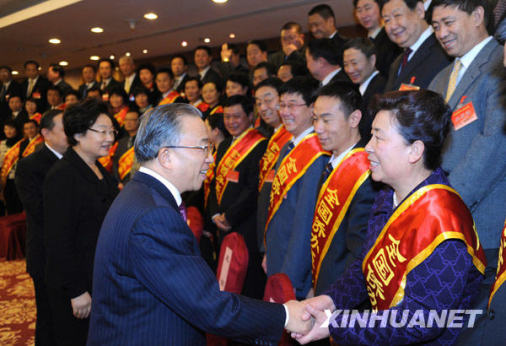 1月11日,2010年全国侨办主任会议在北京召开。这是国务委员戴秉国会见受表彰的全国侨办系统先进集体和个人代表。新华社记者丁林摄