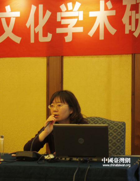 中国社科院文学研究所台港澳文学与文化研究室副研究员李娜发言(中国台湾网 徐丽华 摄)