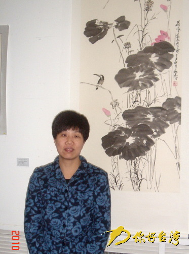 国务院台办交流局副局长何岚菁在参展作品前留影(你好台湾网 图)
