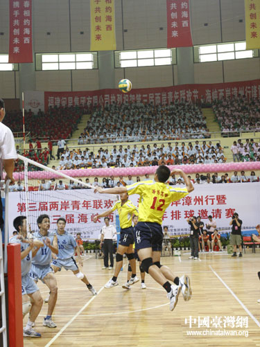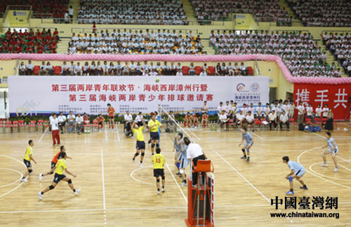 中国台湾网7月22日消息 由中华全国青年联合会、福建省政府共同主办的第三届两岸青年联欢节海峡西岸行活动之一——第三届海峡两岸青少年排球邀请赛19日在漳州华阳体育馆开幕。全国青联主席杨岳,福建省委常委、宣传部长唐国忠出席开幕式。