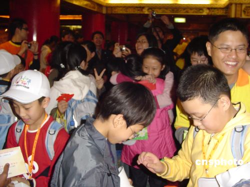 车子到了台北故宫博物院后,两岸小朋友手牵着手互相交头接耳说着悄悄话,台北小朋友把自己的父母拉在一起,与北京小朋友一起合影留念。台北小朋友罗源庭告诉记者,北京真大,他去年到北京玩得很开心,博大的北京城让他看得眼花瞭乱。他说,这是他自出生以来走的最远的路,又交上了一位生活在不同社会的朋友使他感到庆幸。回来后,他一直很想念北京,更想念北京的朋友。于是,他回台北后,不仅与北京的小朋友书信不断,而且还在他的作文里写道:“北京之行,这辈子我都难以忘记”。