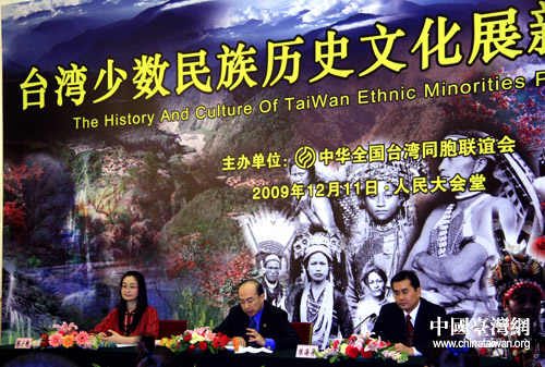 台湾少数民族历史文化展将于2009年12月21日——2010年1月6日在北京举行,图为11日该展览新闻发布会在北京人民大会堂举行(中国台湾网 李徽 摄)