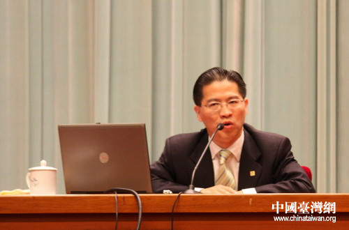 上海世博会筹委会副主任周汉民关于上海世博会筹备情况的精彩讲解。(中国台湾网 芮文辉 摄)