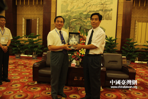 台湾青年团向山西省委常委、秘书长高建民赠送台湾瓷器(中国台湾网 陈宁 摄) |