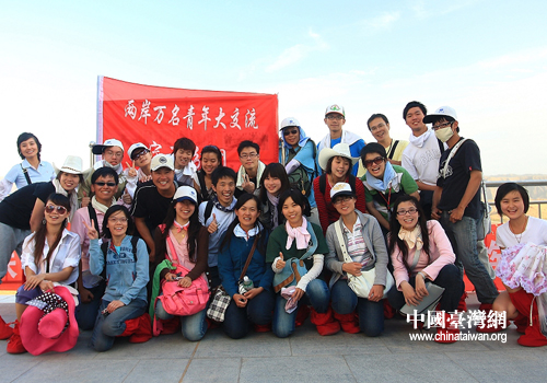 “希望牵两岸,青春耀中华——两岸万名青年大交流”宁夏分团夏令营同学与宁夏同学合影留念。(图片来源:宁夏台办)