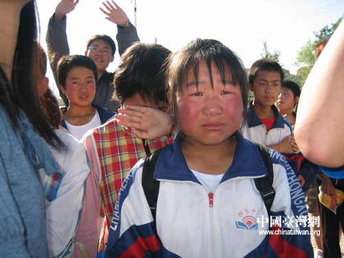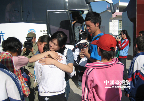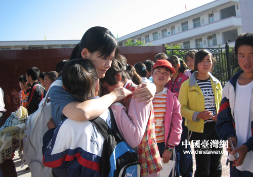 临别时,两岸的同学们潸然泪下,哭成一片,泪眼朦胧的“红苹果”充满了依依惜别的离情(图片来源:宁夏台办)