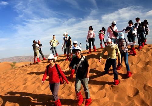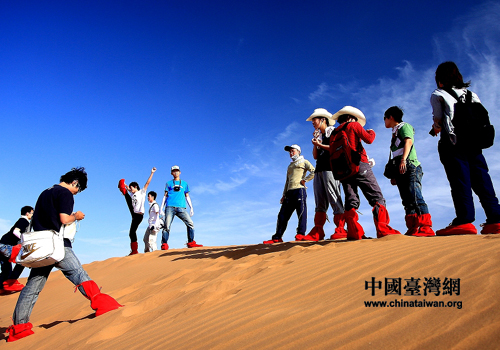 我们也体验一下沙漠行走的感觉。 武波 摄(图片来源:宁夏台办)