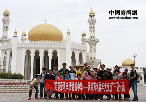 “希望牵两岸,青春耀中华——两岸万名青年大交流”宁夏分团夏令营同学与宁夏同学合影留念。(图片来源:宁夏台办)