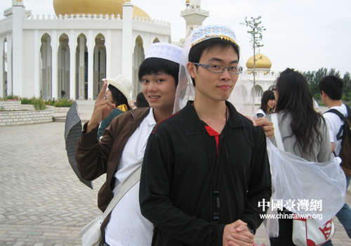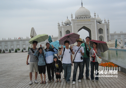 台湾同学在雨中仍然兴致勃勃(图片来源:宁夏台办)