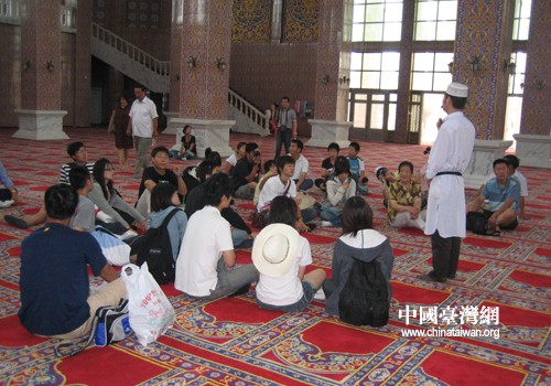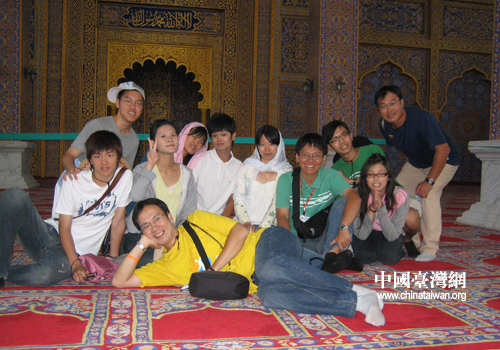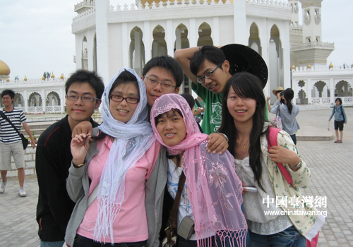 同学们在金碧辉煌的礼拜大殿前留影(图片来源:宁夏台办)